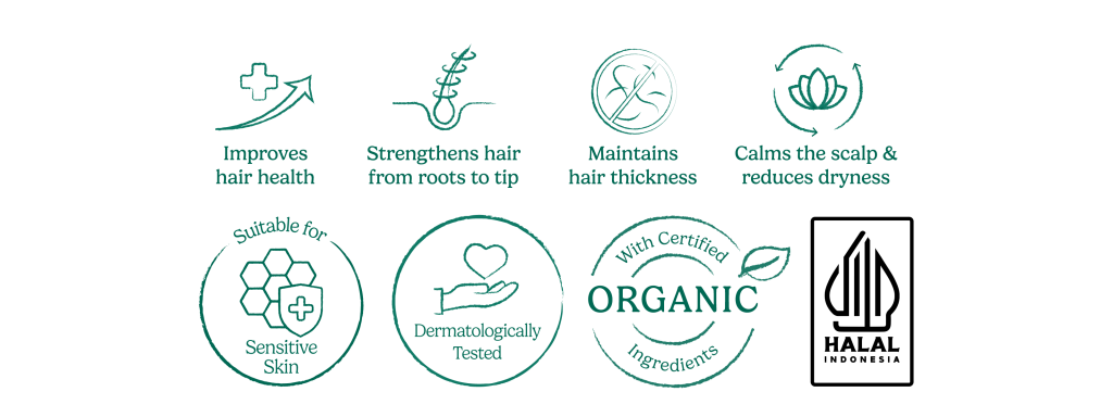 - Provitamin B5 & Aquaxyl Organik: Menutrisi rambut & kulit kepala agar mudah diatur